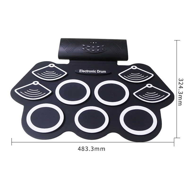 Get Portable Electronics Roll Up Drum Pad Set 9 Silicon Pads Built-In Speakers with Drumsticks Foot Ped